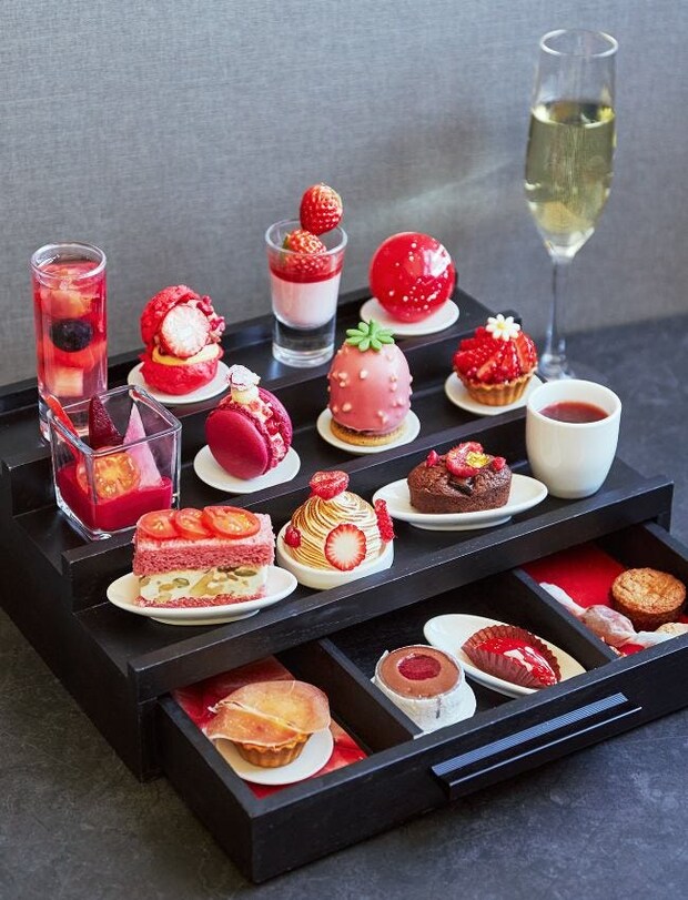 地上264mの天空に広がる絶景を眺めながら味わう、特別なストロベリーアフタヌーンティー。スパークリングワイン・赤ワイン・白ワインといったアルコール飲み放題のプランも。
