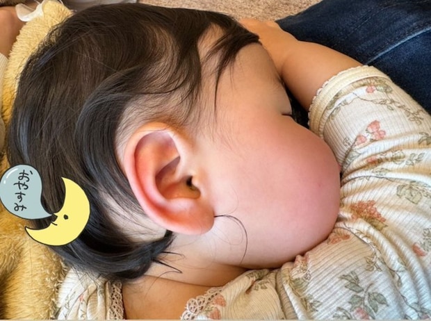 見事にぷっくりとしていて、まさにしんちゃんのほっぺですね。お肌がもちもちでうらやましくなってしまいます。子どものすやすやと眠っている姿を見ていると、温かい気持ちになりますね。どんな夢を見ているのでしょうか。