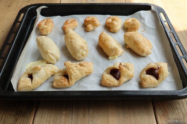 常温で10分程置いてから、成形してオーブンで焼けばおやつパイのできあがり。焼きたてはパリパリで、生地そのものはさっぱりしているからいくらでも食べられそう。お菓子作りはもちろん、料理にも活用できますよ。