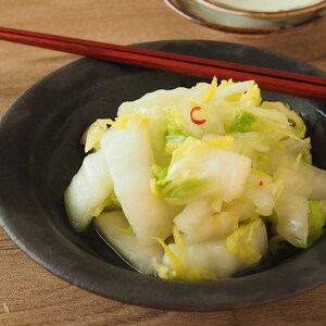 <材料> 白菜、ゆず、白だし(2倍濃縮)、赤唐辛子