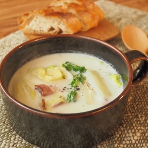 レシピを見るほっと温まるミルクスープ。旬の甘い白菜はミルクとの相性も抜群です!