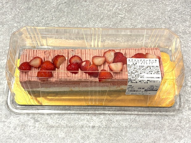 コストコらしい横長のパッケージに700gのケーキが入って、価格は2,498円(税込)。ケーキの上にはツヤ感のあるイチゴが綺麗に並べられ、食卓に置くだけで一気にパーティのような雰囲気になります。