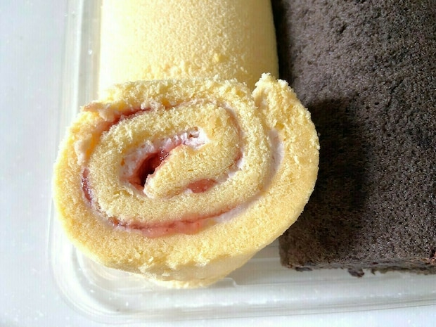 こちらの商品はプレーン生地にはイチゴソース入りのホイップ、チョコ生地にはチョコクリームが巻かれています。