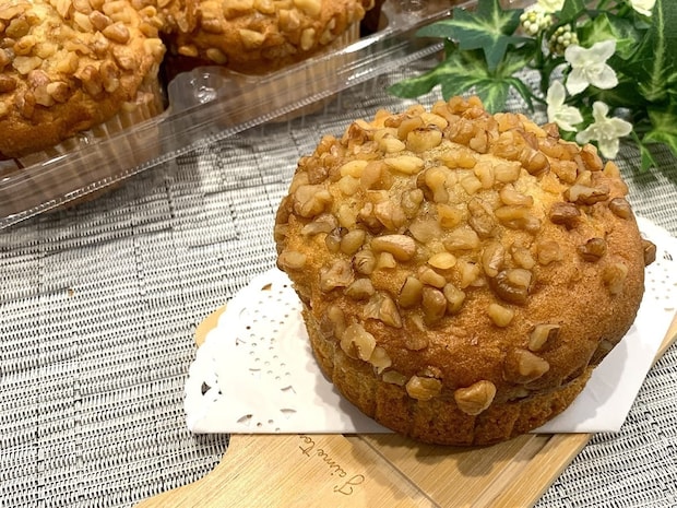 表面にかかったくるみは、しっとりしたマフィンと相性抜群!ザクザク食感がアクセントになり、半分の量でもしっかり食べた感があります。