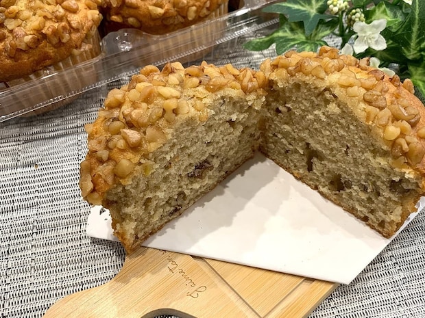 くるみの香ばしさと若干の渋みがバナナマフィンの甘みと調和し、味に深みが出てとても美味しく仕上がっています。