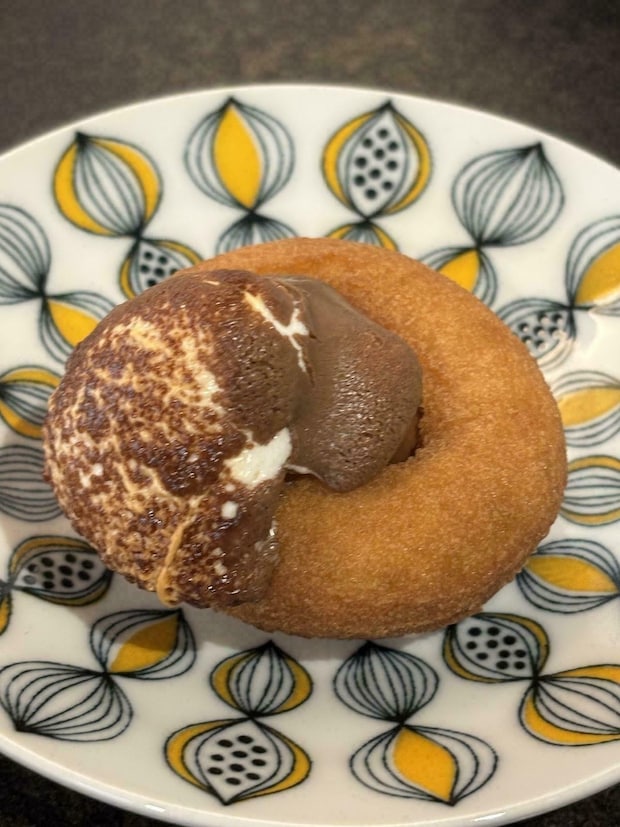 ドーナツの上にチョコマシュマロをトッピングして約5分トースターで焼くと、外はサクッと内側からとろけ出すチョコとマシュマロの香ばしい甘さが絶品です♪