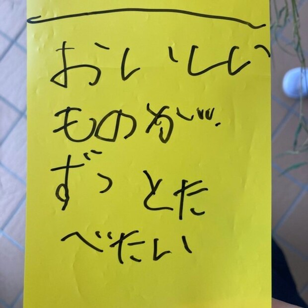 短冊に大きく書かれたのは「おいしいものがずっと食べたい」という切実な願い。心の声に忠実な思いが伝わってきて、とてもいいですよね。おいしいものを食べる瞬間は、誰でも幸せを感じるのではないでしょうか。