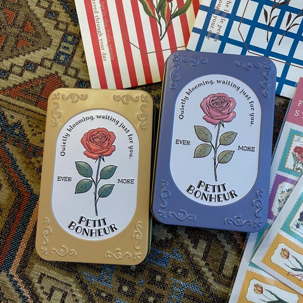 おともだちとの写真で作ったアクリルキーホルダーをラッピングしお手紙を添えてこちらのギフト缶に入れてお渡し予定です◎