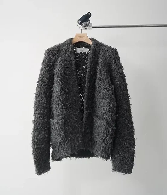 アウター代わりにもなる肉厚感やボタンレスなデザインがレイヤードしやすいところや、モップのような毛足の長いニット感がお気に入りです。ニットカーディガン¥59,400(ジェーンスミス)
