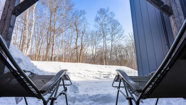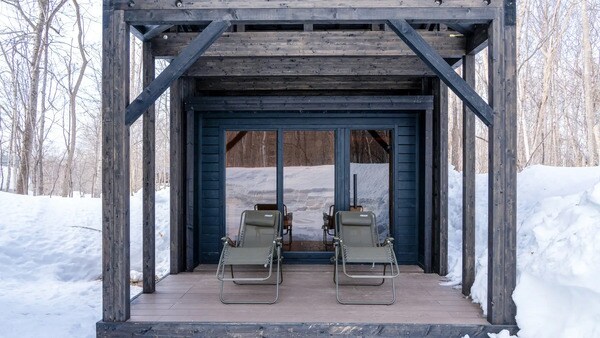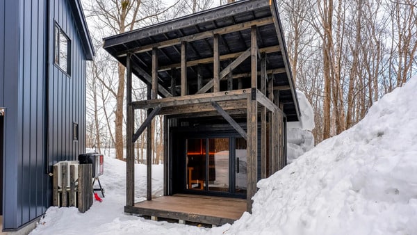 「COCO VILLA ニセコ」のサウナには、エストニア製サウナキャビン「Patio M」が備わっており、HUUMの電気ストーブが生む熱に包まれながら、雪景色を眺めてのサウナを楽しめる。