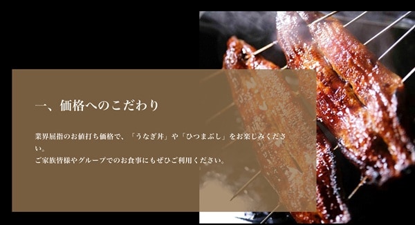 1つ目は価格へのこだわり。お値打ち価格でうなぎ丼やひつまぶしを味わうことができ、家族やグループでの食事にもぴったりだ。