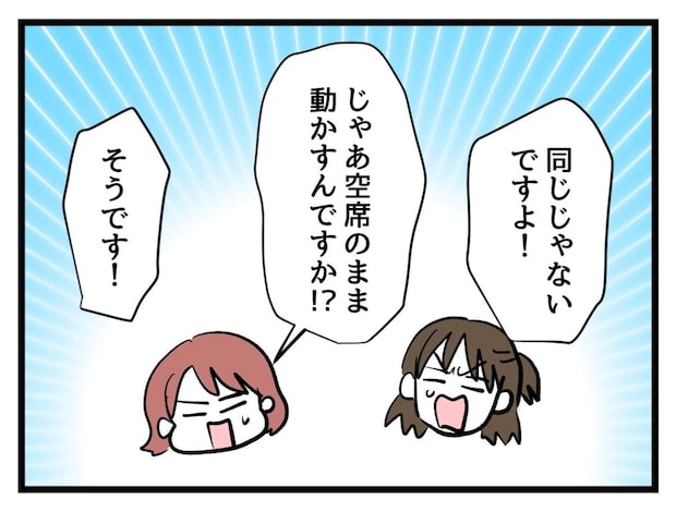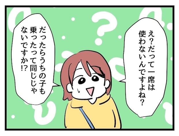 どうしても1席空いているということに執着しているようすのたまみ。空いているからといって、他人のお金でタダで乗っていいということにはなりません。