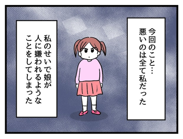 まいはいつもたまみの姿を見ていたために、なんでももらっていいのだと信じ、善悪の分別がつかなくなっていました。友人のママや夫に言われ、自分の過ちと向き合うことにしたたまみ。今まで母親の言うことが正しいと信じ生きてきたたまみにとって、考え方を変えることはそう簡単ではありません。今までの自分を全否定されるようで、受け入れるのはつらいことでしょう。しかし、娘のため、これから生まれてくる子のためにも変わる決意をしました。