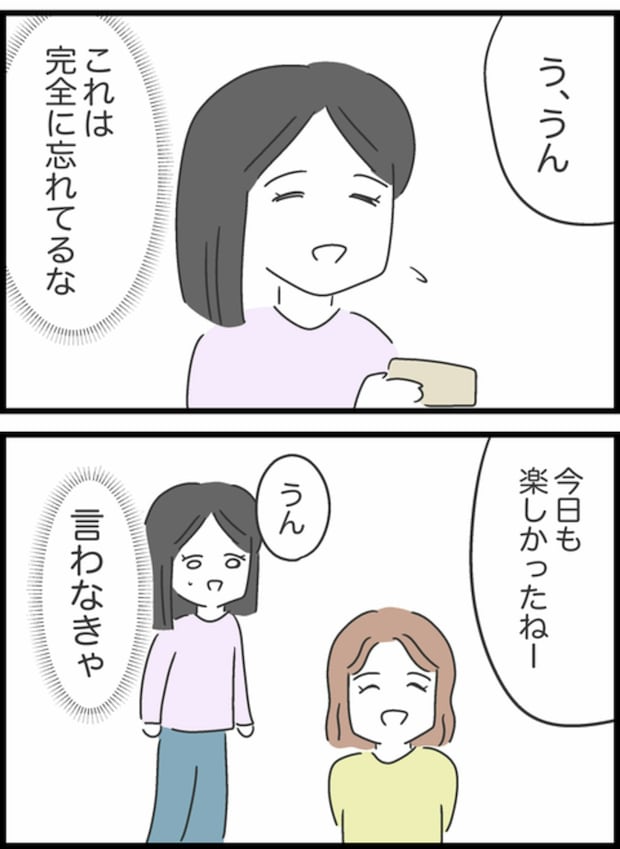 会計のときに手持ちのお金で間に合ったことに安堵するすみれの様子から貸したお金のことは忘れていると感じたすみれ。お金のことをちゃんと言わなければと思いますが、なかなか言うタイミングをつかめずにいました。結局、りかからお金の話はなくすみれからも何も言えないまま2人は解散してしまいます。