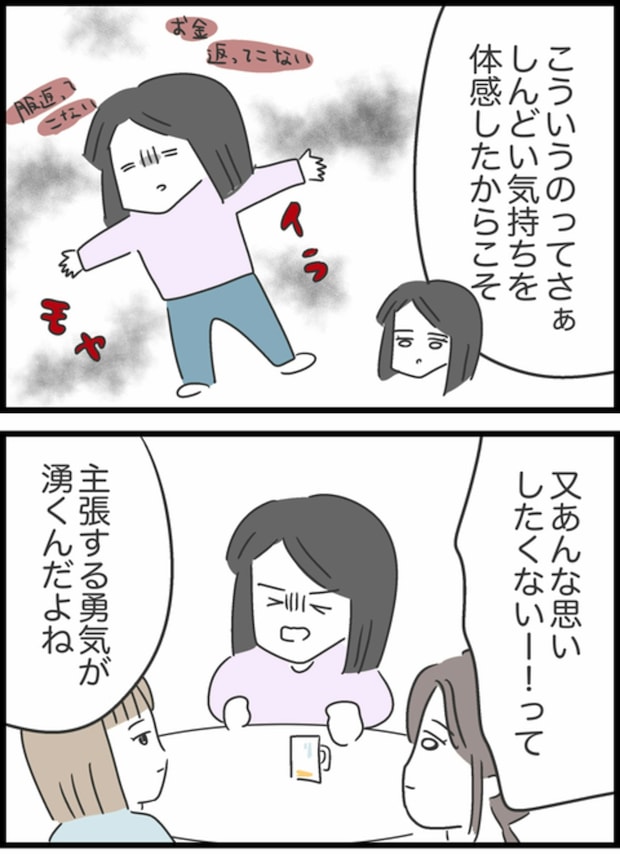 その後、服は返却されましたが最後まで謝罪はありませんでした。すみれは「もう貸し借りはしない」と決意。人との距離感を見つめ直すきっかけになるお話です。
