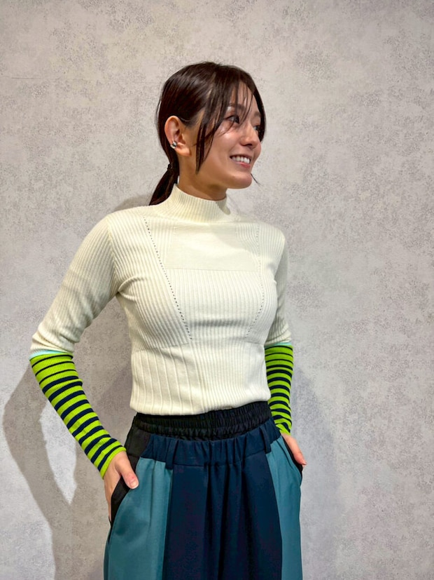 折角なので、実際にAULA AILAを使用したコーデを試着してみました(*^^)v
