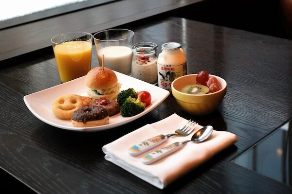 館内のレストランには、子ども用メニューや朝食時のキッズビュッフェカウンターがあり、家族での楽しい食事時間を演出する。