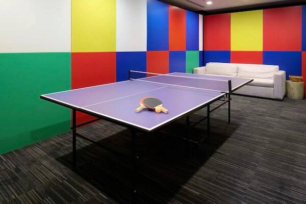 卓球やダーツ、けん玉などで遊べる無料のゲームルームも完備している。