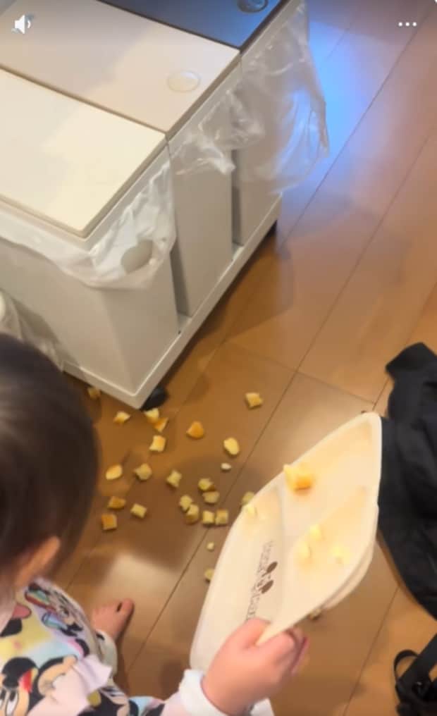 落ちたものは私が全て食べましたのでご安心ください。おとちゃんは食べ物がお皿から落ちたりすると食べられなくなったと思い泣いてしまいます。食に貪欲な女の子です。食べることが大好きです。