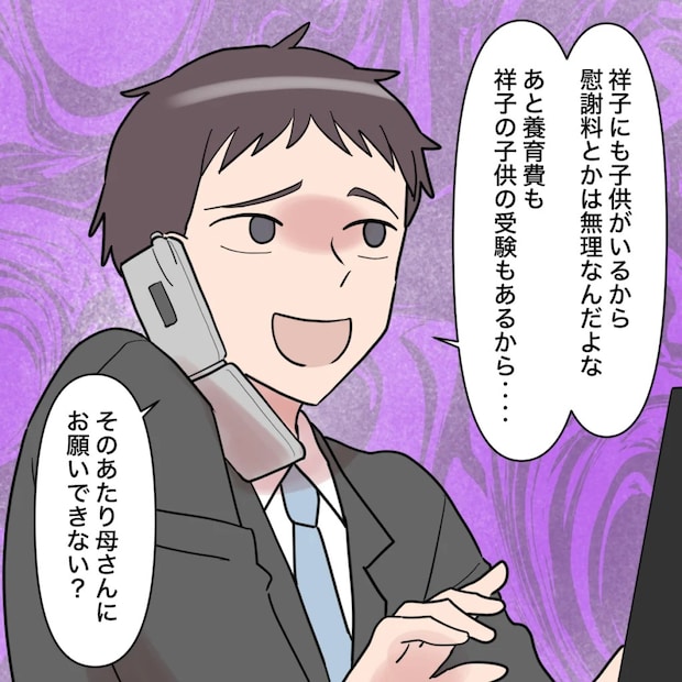 すると渉は、「祥子にも子どもがいるから慰謝料とかは無理なんだよな、あと養育費も祥子の子どもの受験があるから・・・そのあたり母さんにお願いできない?」と、信じがたいことを言い出しました。不貞を働いたうえに、慰謝料も養育費も払う気がないなんて・・・自分のしたことの愚かさにまるで気づいていないようです。