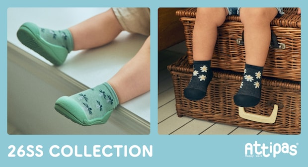 お家の中はもちろん、公園やお散歩など春のお出かけにもぴったり。赤ちゃんの足にやさしくフィットし、歩き始めの一歩一歩を自然にサポートする“ソックスシューズ”として、毎日の歩く時間を快適に支えます。
