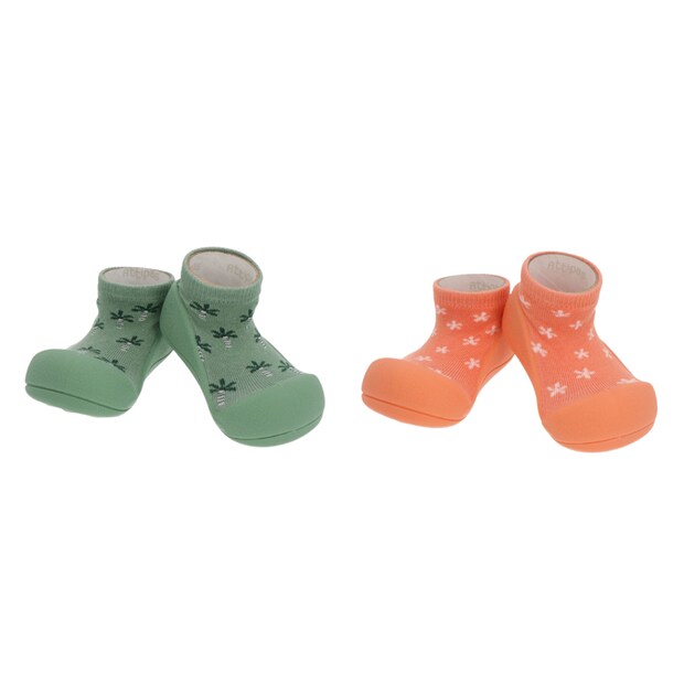 グリーンにはパーム柄、サーモンカラーには小花柄をあしらい、シンプルな装いにさりげない可愛らしさをプラス。洗練されたデザインで、ギフトにもおすすめの一足です。
