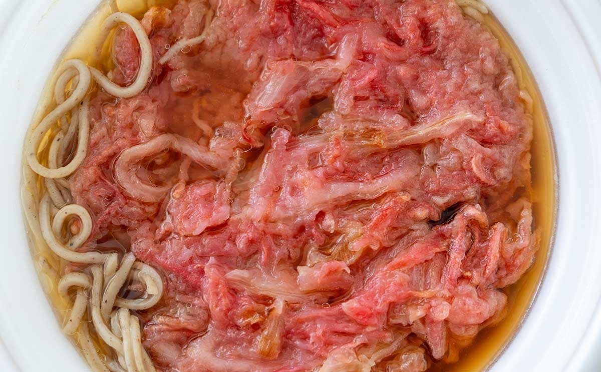 昨年の「紅生姜天そば」の天ぷらは茶色でしたが、今回は赤。見るからに紅生姜ですね。