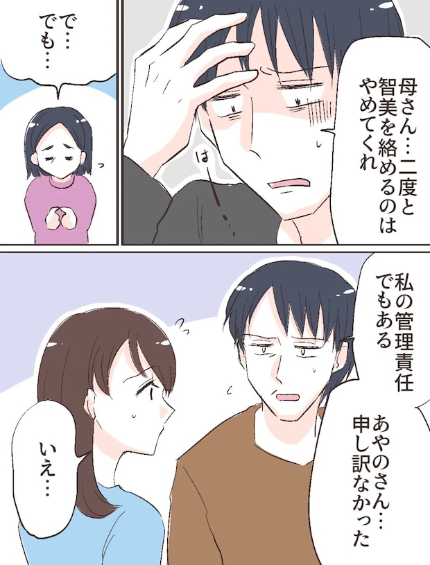その後、「母さん・・二度と智美を絡めるのはやめてくれ」ため息をつきながら修吾がそう言うと、「で・・でも・・」と断り切れない様子の義母。それを見て、「私の管理責任でもある。あやのさん・・申し訳なかった」と義父に謝られ、「いえ・・」と思わず恐縮してしまいました。