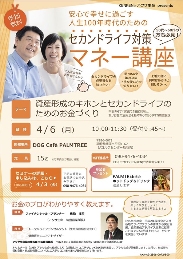 The post 【飯塚】4月6日(月)、DOG Café PALMTREEで「セカンドライフ対策 マネー講座」が開催されます! first appeared on 筑豊情報マガジンWING.
