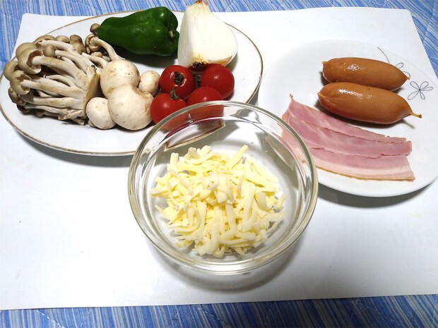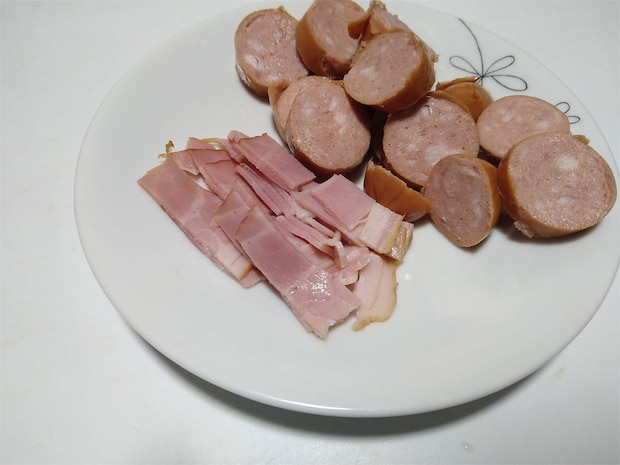 3. ベーコンとウインナーは食べやすい大きさに切る。