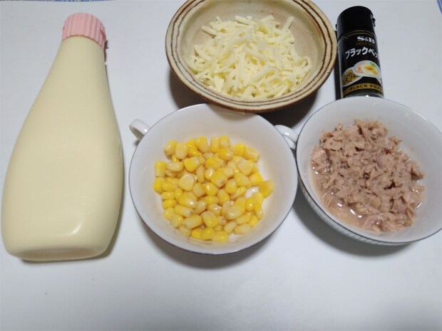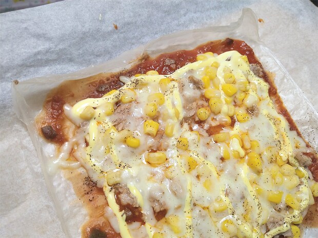 3. その上からチーズ、マヨネーズ、ブラックペッパーをかけて、オーブントースターで7分程度焼く。