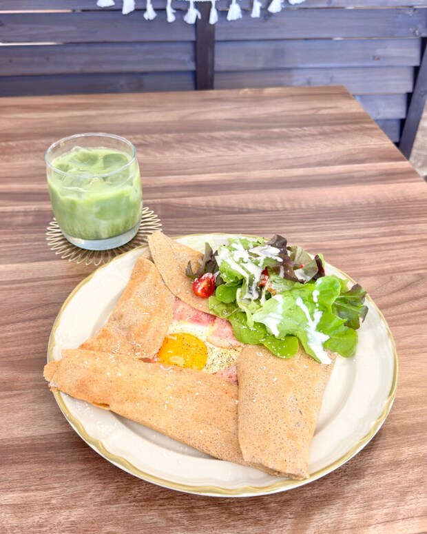 蕎麦粉100%のガレットは、皮はもっちりとしていて縁はパリパリ。