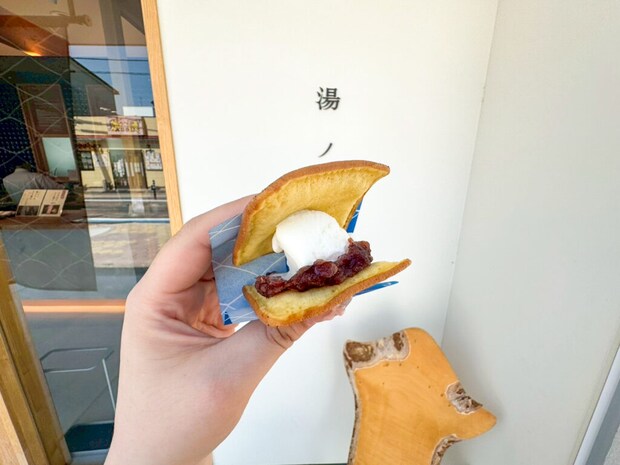 ふわふわの四角い生地に冷たい塩ミルクアイスと自家製の粒あんがサンドされていて、甘さと塩気の絶妙なバランスに思わずにっこり。