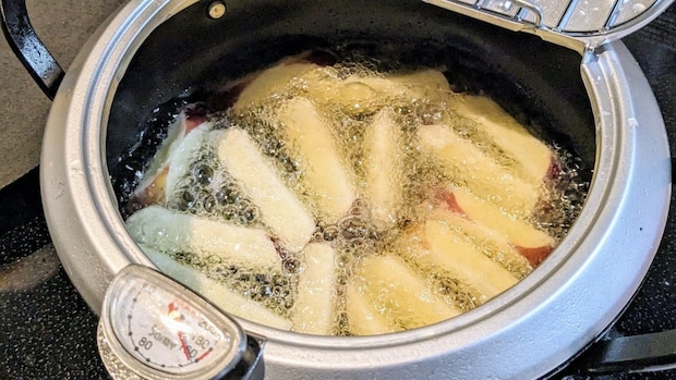 油の温度は180℃、キツネ色になるまで揚げると◎。