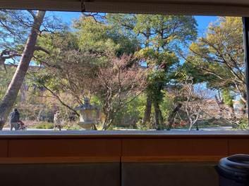 楽水亭から見える日本庭園/筆者撮影