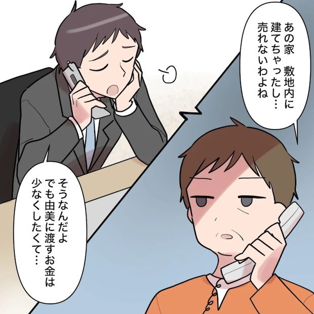 私は渉に、「あの家、敷地内に建てちゃったし売れないわよね」と切り出しました。すると渉はため息をつきながら、「そうなんだよ、でも由美に渡すお金は少なくしたくて・・・」と本音を漏らします。不貞を働いたくせに、裏切った妻にはお金を払いたくないなんて、わがままにもほどがあります。