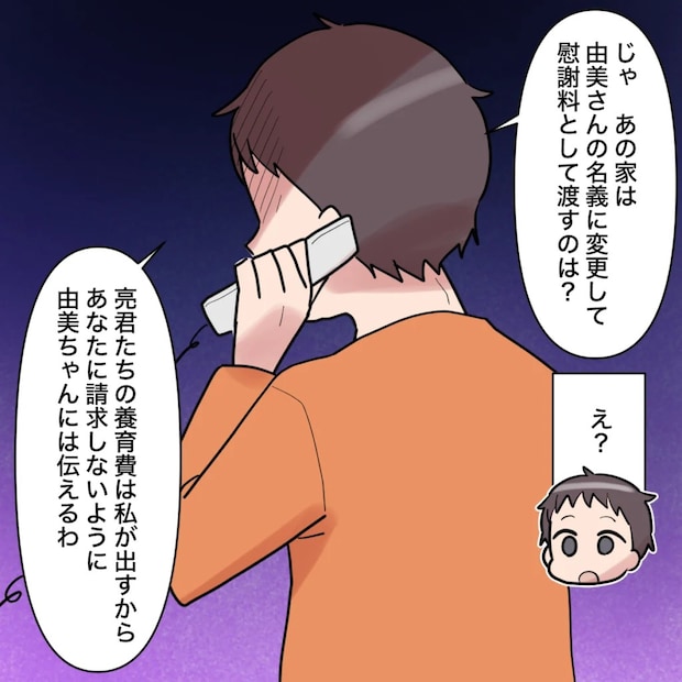 不貞を働いたにもかかわらず、慰謝料はおろか、養育費すら払いたくないと言う渉。血のつながった子どもにお金を出さず、血のつながっていない子どもにはお金を出したいなんて呆れます。こんな無責任な男が自分の息子だと考えるだけで虫唾が走ります。