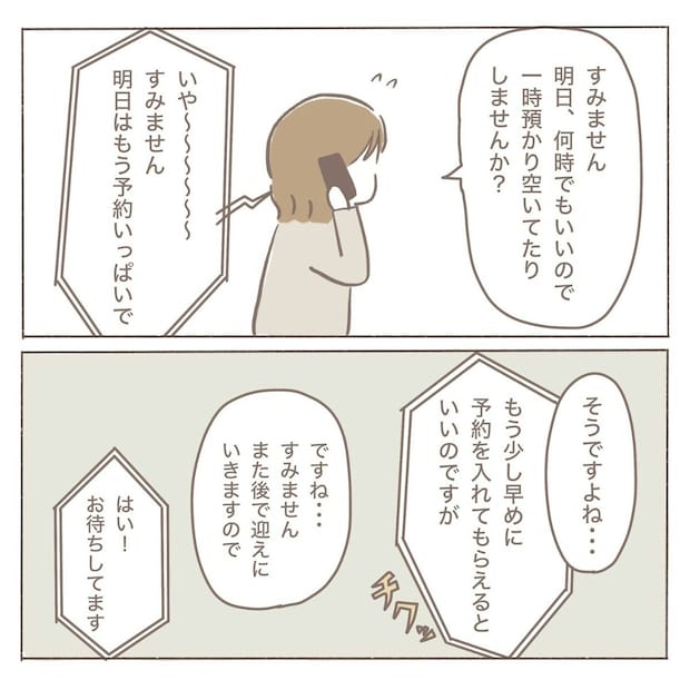 「会計を待つわずかな時間で、娘さんの預け先を確保しなければなりません。しかし、いつもの預け先は明日は利用不可…。このままでは人工授精に行けない。coromoさん、大ピンチです。