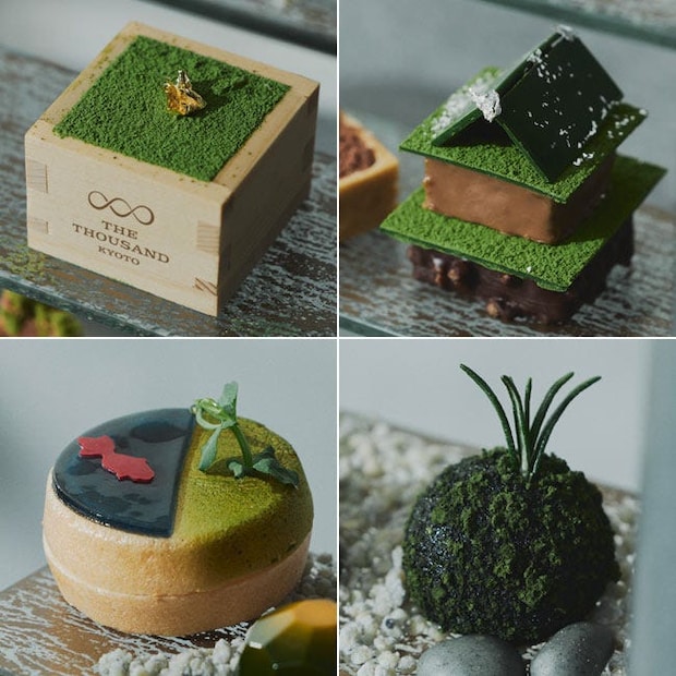 ティースタンドに並ぶのは、京都の庭園をそのまま切り取ったかのような、愛らしいスイーツ6種。