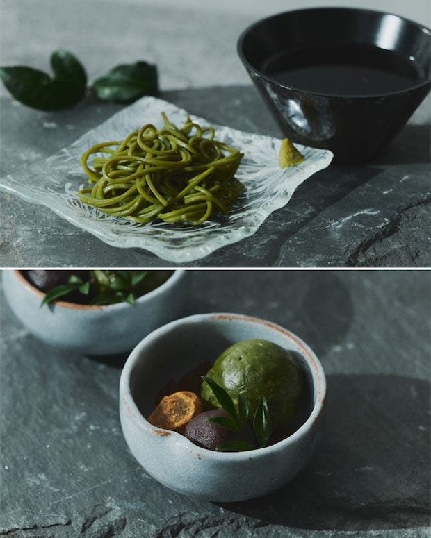 さらに今回のアフタヌーンティーでは、香り高いお茶のそばを自家製の冷たいお出汁でいただく「茶そば」が別皿で提供される。コク深い出汁が抹茶の風味と絶妙に調和し、抹茶尽くしのコースにさらなる奥行きを添える滋味深い味わいをご賞味あれ。