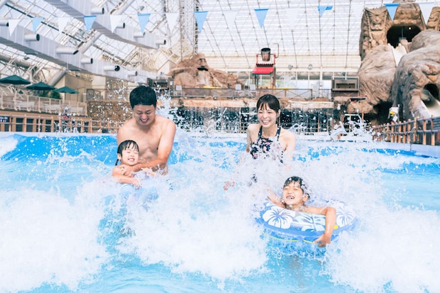 来園に必要な「1Dayパス」は事前購入制で、3月13日午前0時より販売を開始しました。全天候型の屋内プールエリア「アドベンチャードーム」や屋外遊園地のアトラクションが利用できます。