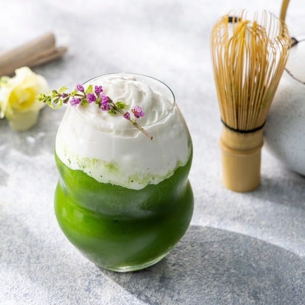 ・ウエルカムドリンクの抹茶ラテから始まるアフタヌーンティーは、すべて京都・宇治産の抹茶を使用