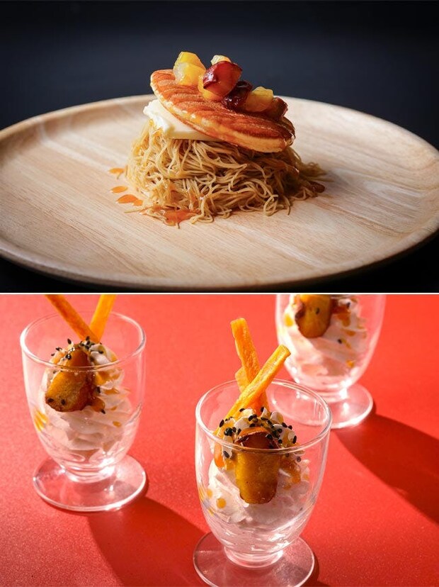アイスモンブランとパンケーキを掛け合わせた実演デザートなどの新メニューも必見