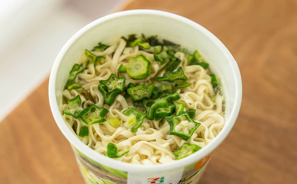 この商品は、つるりとした食感のノンフライうどんに、おくらとめかぶを組み合わせ、鰹と昆布だしのうまみをしっかりきかせたカップ麺です。