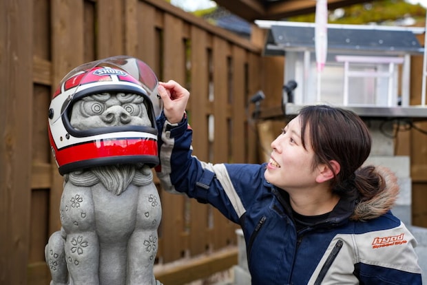 この狛犬がいるのは、鳥取県若桜町の道の駅「若桜」にある『さくらオートバイ神社』。