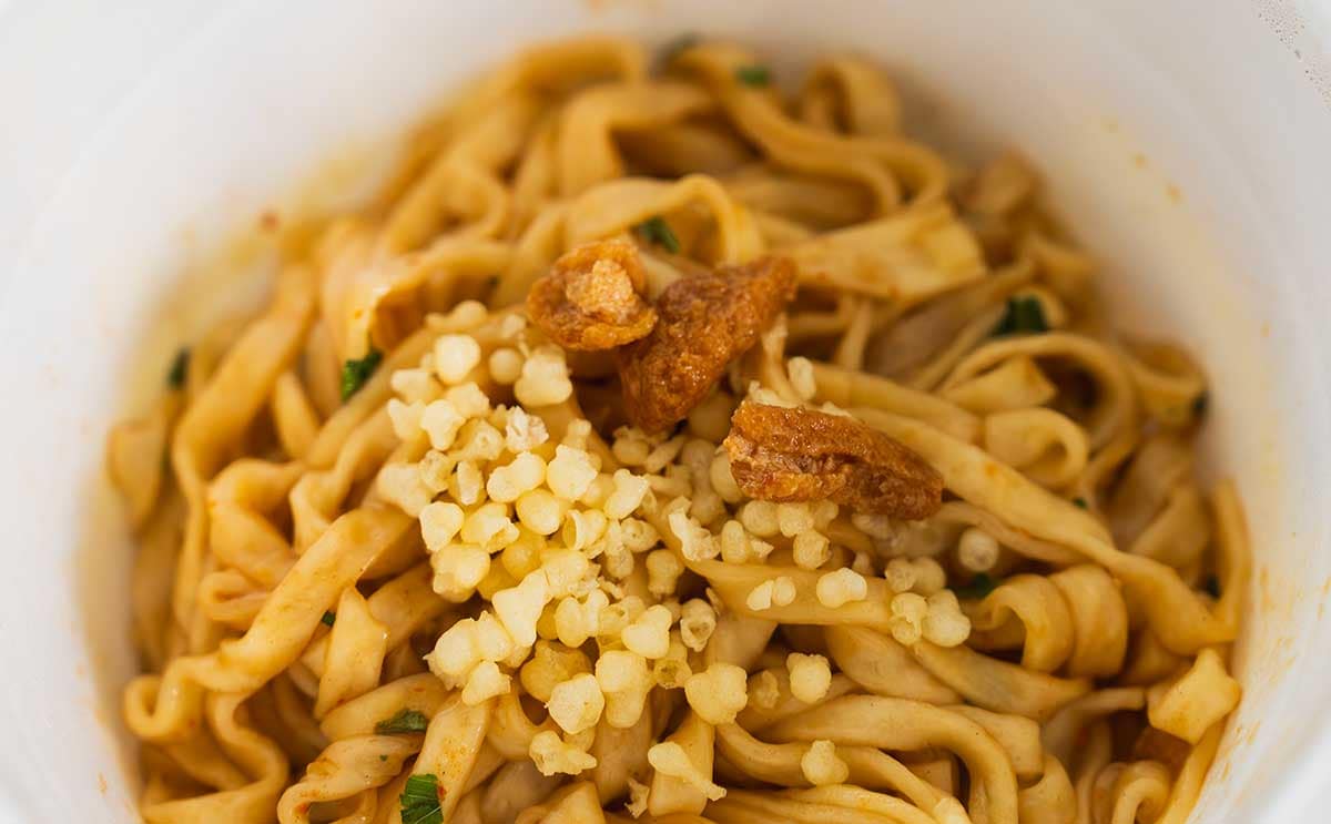 本商品は、「どん兵衛」ならではのつるみのあるもっちりとした食感のうどんを、いつもとはひと味違う“汁なし”で楽しめるカップ麺です。