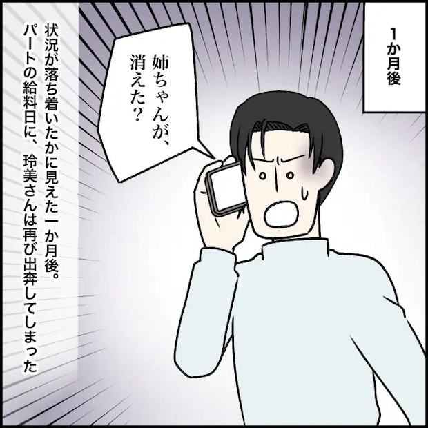 しかし、状況が落ち着いたかのように見えた1か月後。パートの給料日に、玲美さんは再び姿を消してしまいました。義両親から電話を受けた太一は、「姉ちゃんが消えた?」と信じられないという表情を浮かべます。やっぱり、玲美さんがそう簡単に諦めるはずがなかったのです。