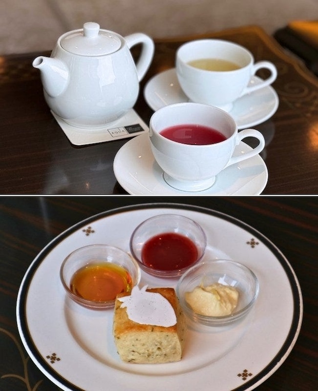 また、今回のスコーンは「ローズマリースコーン」。いちごと相性抜群のローズマリーが練り込まれ、トップにはいちごをかたどった砂糖菓子が添えられています。ストロベリーの紅茶と一緒にいただくと、いちごとローズマリーの風味がマッチしておいしさを引き立てあっていました。