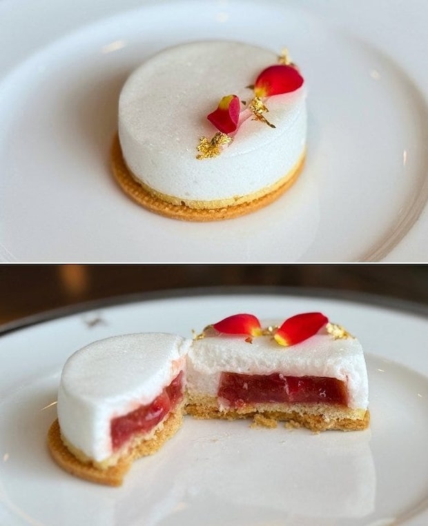 新食感の「泡ジュレ」と、柚子の爽やかな香りが印象に残った「苺と柚子のタルト」。