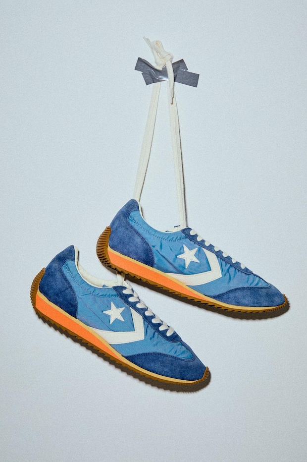 1977年に誕生した『コンバース』のランニングシューズをアップデートした「エスティーファイヤー AG」。ナイロンとスエードを組み合わせた異素材アッパーに、サイドのスターマークがアクセント。アッパーのブルーとオレンジの軽量E.V.A.ミッドソールのコントラストが爽やかで、春の足元を軽やかに彩ってくれる。レトロな雰囲気と快適な履き心地を両立する限定モデル。